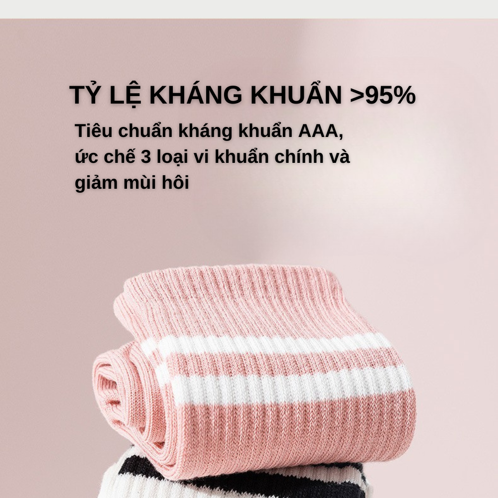 - Tất được làm từ chất liệu cotton chải kỹ cao cấp, co giãn cao, mềm mại và thoáng khí hơn, không bị biến dạng sau khi giặt.