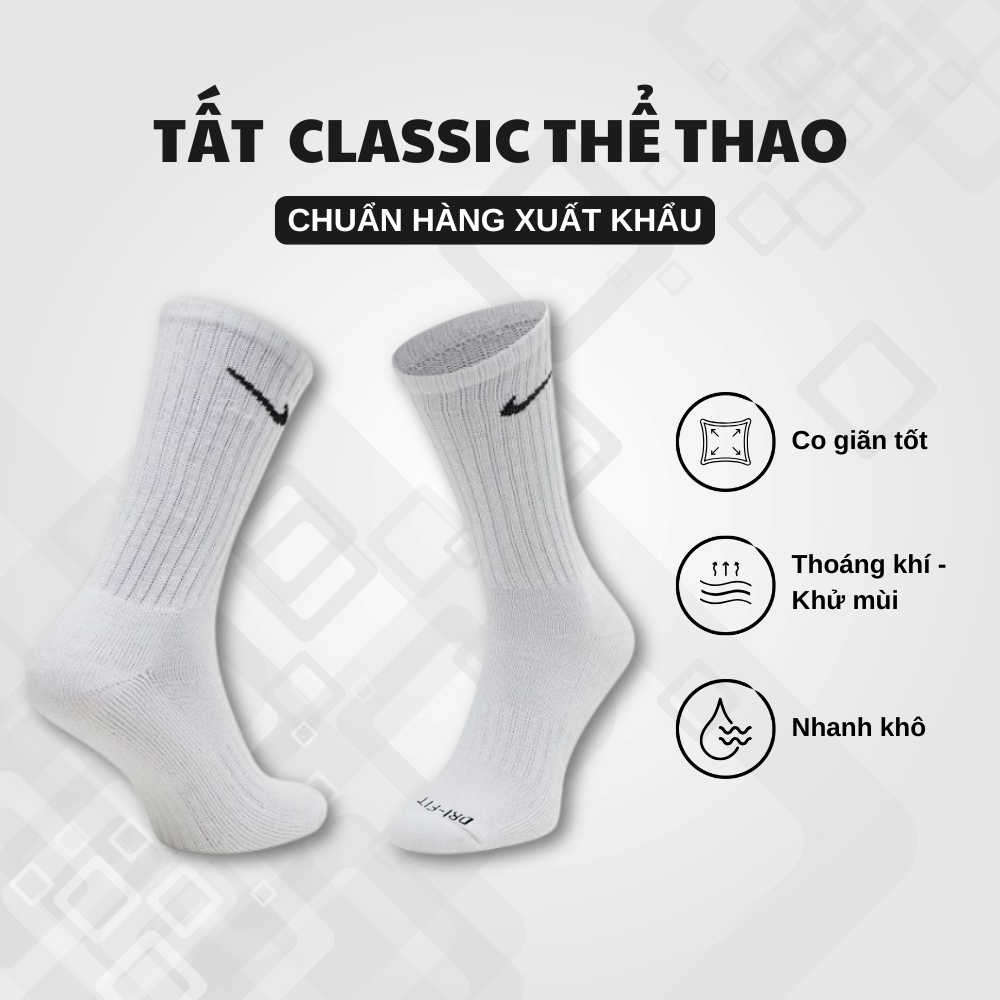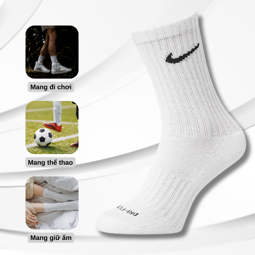 - Vớ tất Nlke Dri-fit Chính Hãng với công nghệ Drifit có độ bền cao, mềm mại, mịn màng, thấm hút mồ hôi tốt.